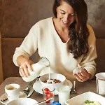Οι επισκέπτες μπορούν να απολαμβάνουν πρωϊνό στο εστιατόριο κάθε πρωϊ.